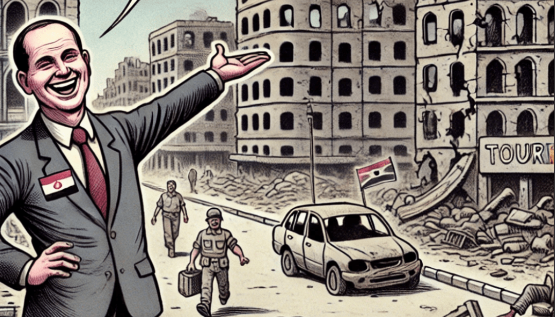 السياحة في وطن مدمّر! لنتوقف هنا قليلاً ونفكر: عن أي سياحة يتحدث السيد الوزير في بلد تزينه الأنقاض وتغمره رائحة الحرائق؟ هل هذه دعوة للسياحة التاريخية بمفهوم جديد؟ حيث يمكن للزائر أن يشاهد كيف تحول الحي العريق إلى “مجموعة من الصخور المتناثرة”، أو يتجول في أسواق قديمة تحولت لمناطق أشباح يعانقها الصمت الكئيب.