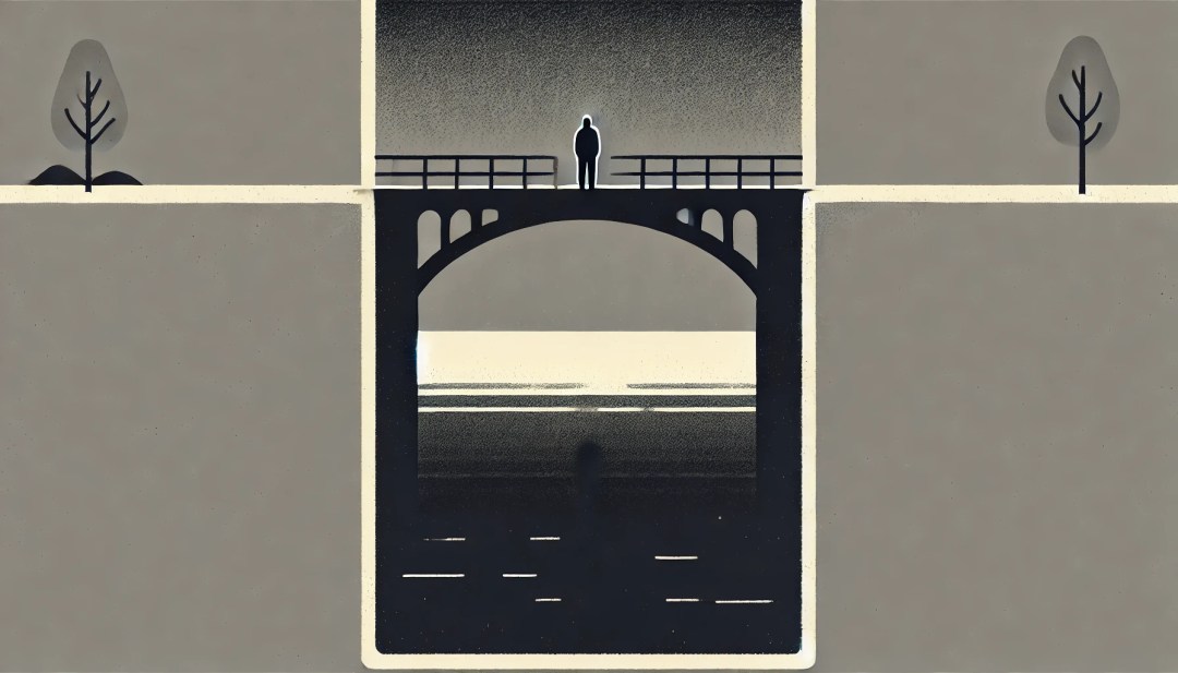 وفي لحظة يأس، قرر أن ينهي كل شيء. وقف على الجسر الذي يعبر النهر المظلم، نظراته فارغة، جسده متهالك. كانت كلمات الجلادين تتردد في رأسه: